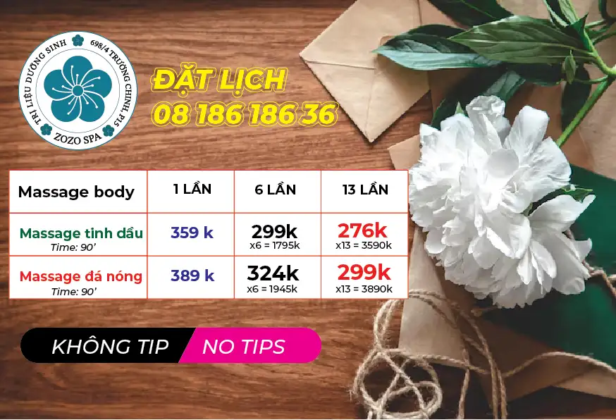 Hãy trải nghiệm dịch vụ Massage Khỏe tại ZOZO Spa để cảm nhận sự khác biệt! Liên hệ ngay qua hotline hoặc đặt lịch trực tiếp để được phục vụ tốt nhất.